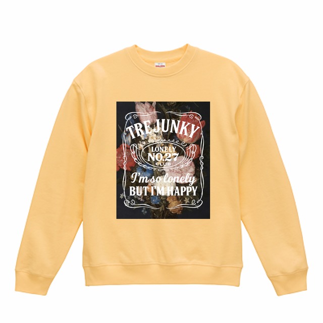 【ジェンダーレス展開 SからXXL まで展開】treJunkY FLOWER 27 CLUB LOGO CREW NECK(VINTAGE YELLOW)