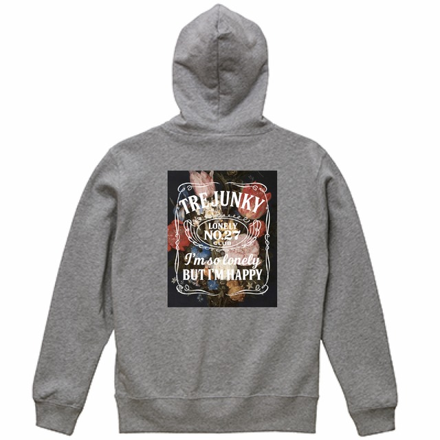 【ジェンダーレス展開 SからXXXL まで展開】treJunkY 27 CLUB FLOWER LOGO HOODIE(GRAY)