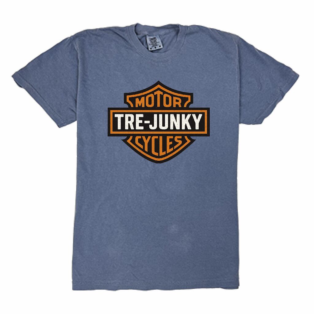treJunkY BIKER LOGO VINTAGE加工 TEE (FADED NAVY)