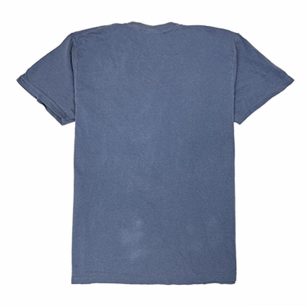 後染め加工のボディでTシャツの芯まで染まってない為、着用を繰り返す事で独自な色落ちが楽しめヴィンテージ感が増してきます。