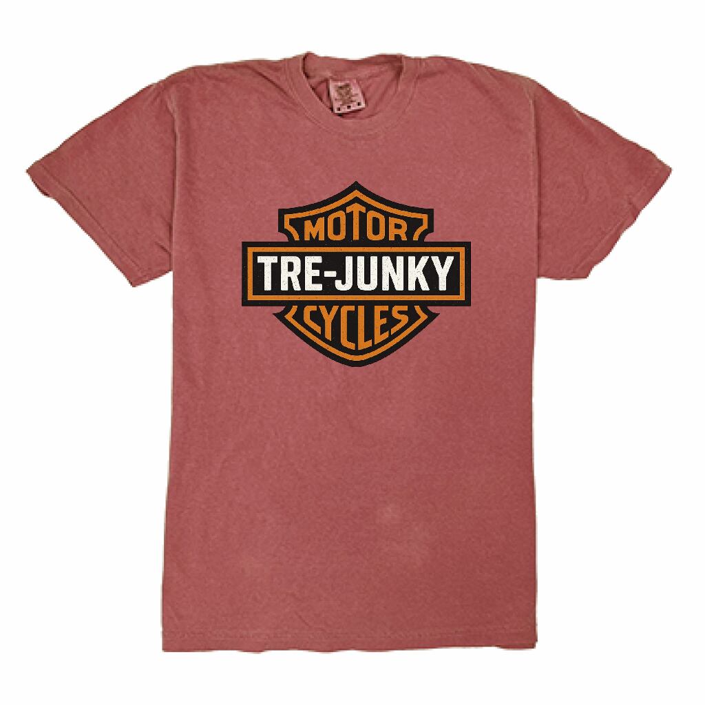 treJunkY BIKER LOGO VINTAGE加工 TEE (FADED RED)