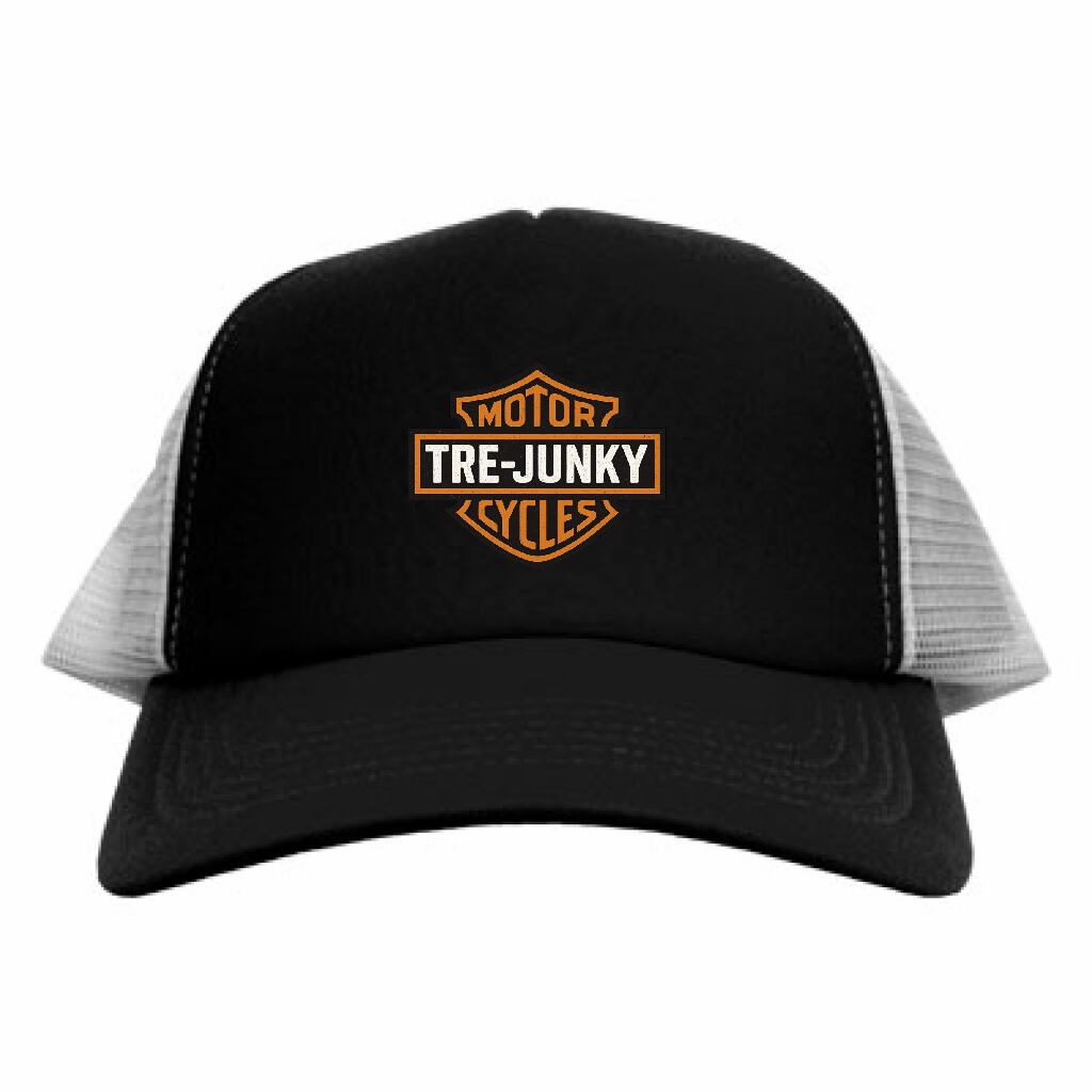 treJunkY BIKER LOGO MESH CAP(BLACK × WHITE)