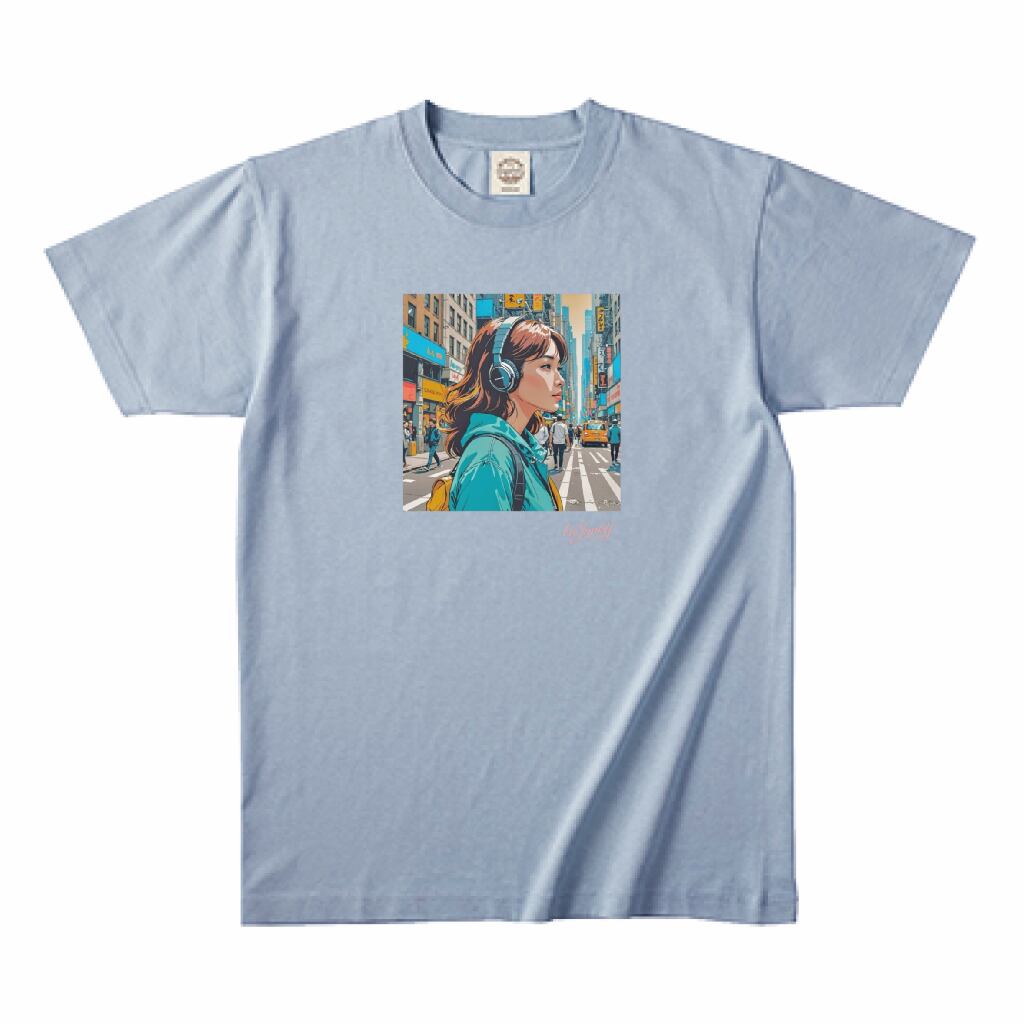 【ジェンダーレス展開 SからXXL まで展開】treJunkY NYC GIRL TEE(ICE BLUE)