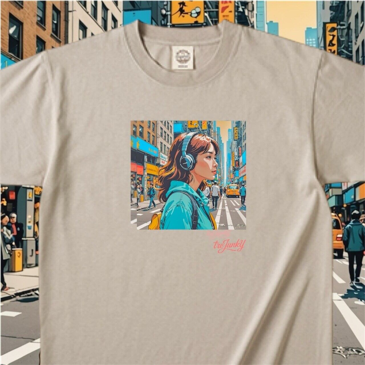 【ジェンダーレス展開 SからXXL まで展開】treJunkY NYC GIRL TEE(BEIGE)
