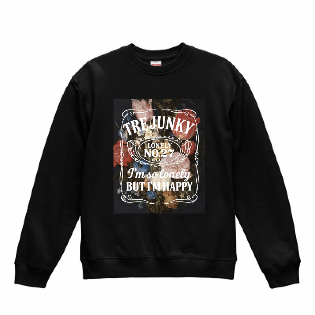 【ジェンダーレス展開 SからXXL まで展開】treJunkY FLOWER 27 CLUB LOGO CREW NECK(BLACK)