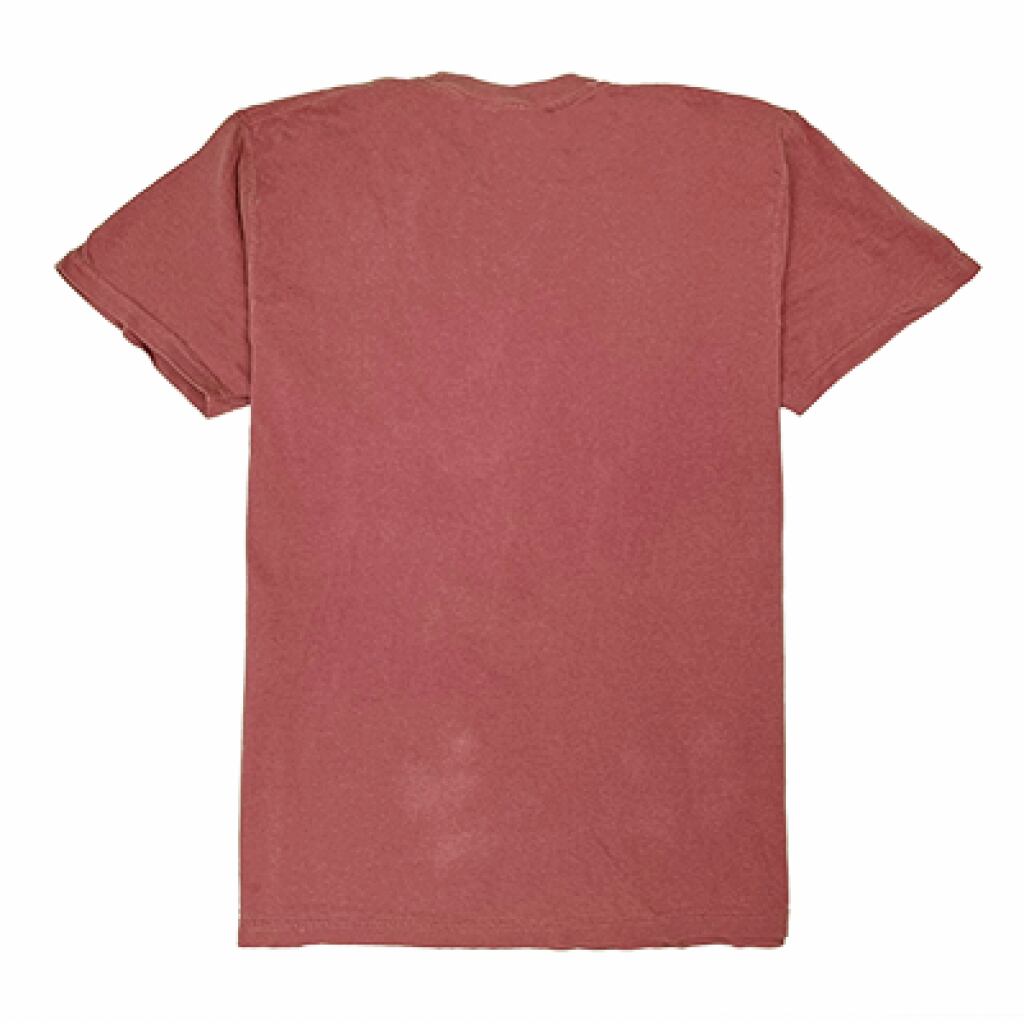 後染め加工のボディでTシャツの芯まで染まってない為、着用を繰り返す事で独自な色落ちが楽しめヴィンテージ感が増してきます。