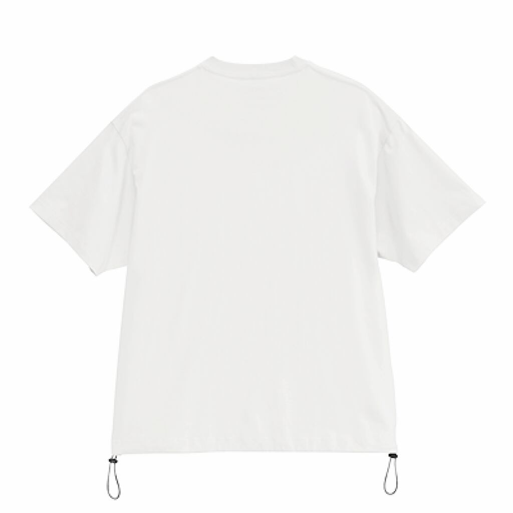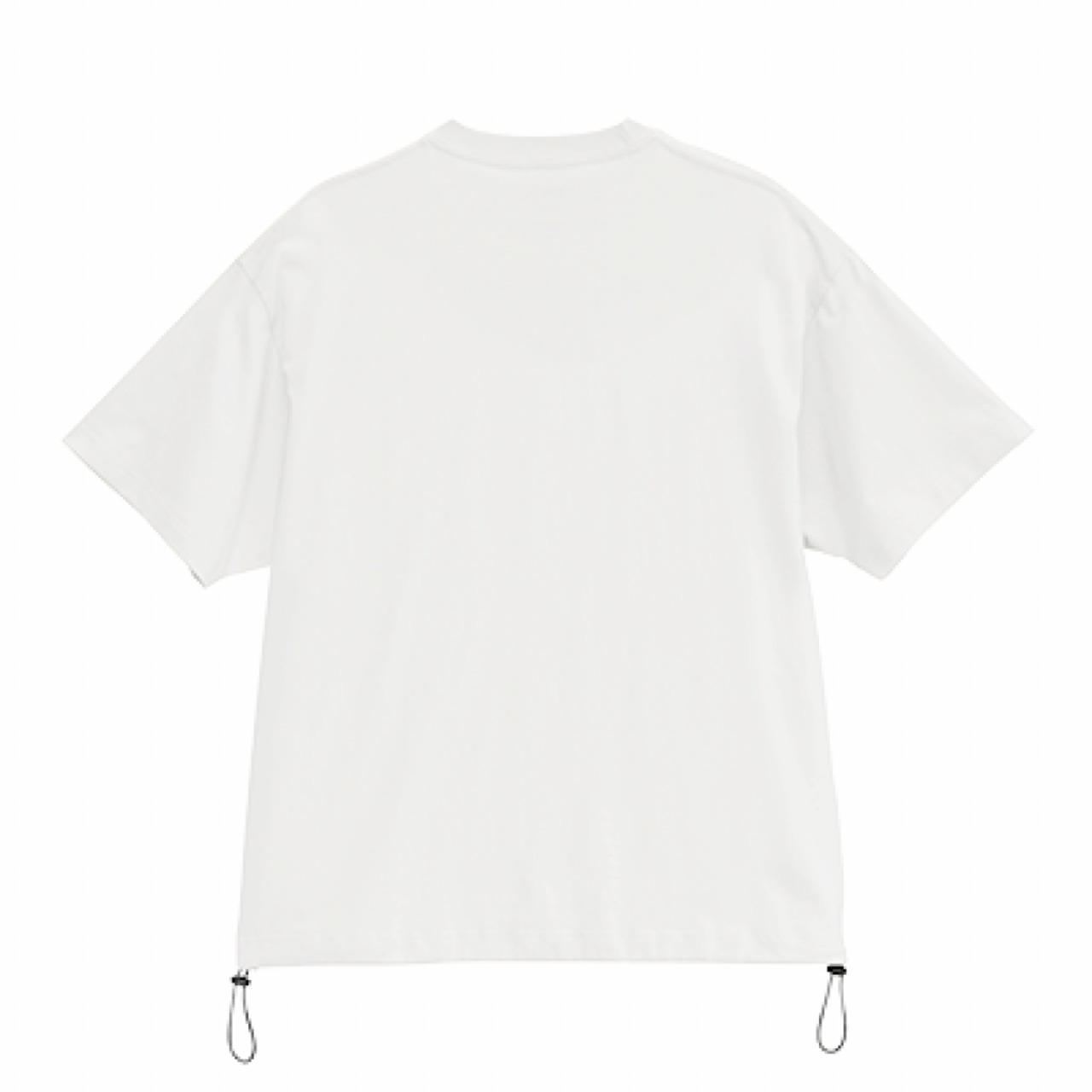 ドロップショルダーで全体的にゆったりとしたシルエットに仕上げており、裾を絞って好みの丈に調整することでシルエットに変化をくわえられます。