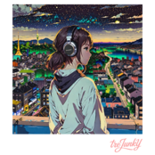 ヨーロッパの街並みを音楽を聴きながら眺めているグラフィック。