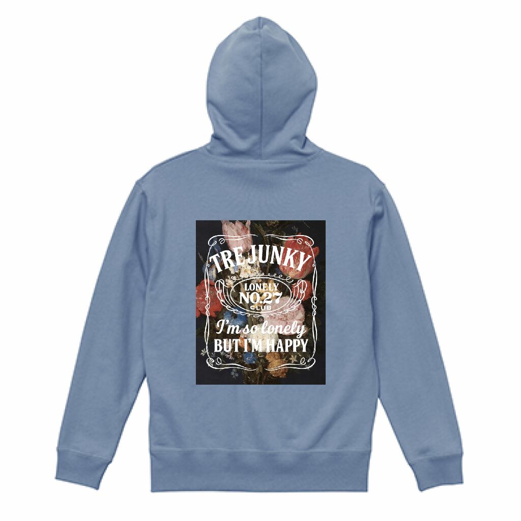【ジェンダーレス展開 SからXXXL まで展開】treJunkY 27 CLUB FLOWER LOGO HOODIE(ICE BLUE)
