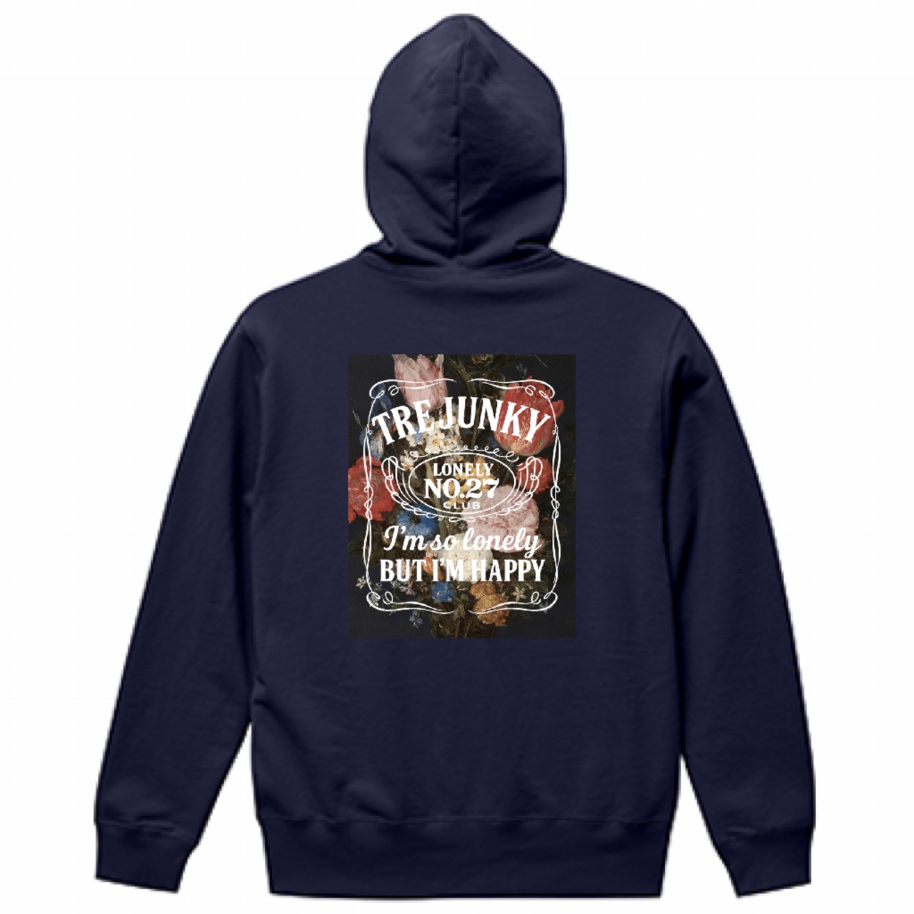 【ジェンダーレス展開 SからXXXL まで展開】treJunkY 27 CLUB FLOWER LOGO HOODIE(NAVY)