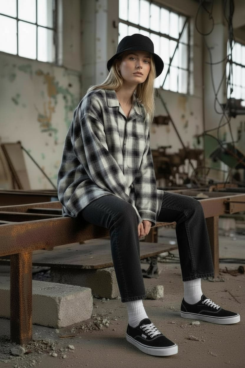 モノトーンのホワイト×ブラックのオンブレチェックは、